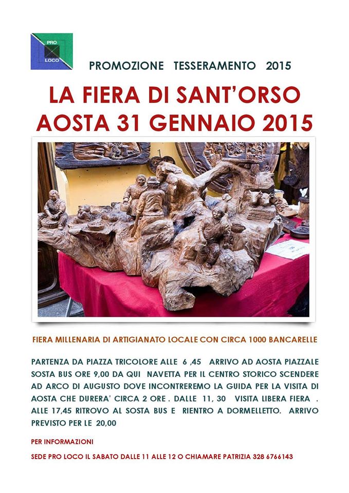 Domenica 31 gennaio, la ProLoco organizza la gita alla famosa fiera di Sant'Orso di Aosta, fiera millenaria di artigianato locale con circa 1000 bancarelle.