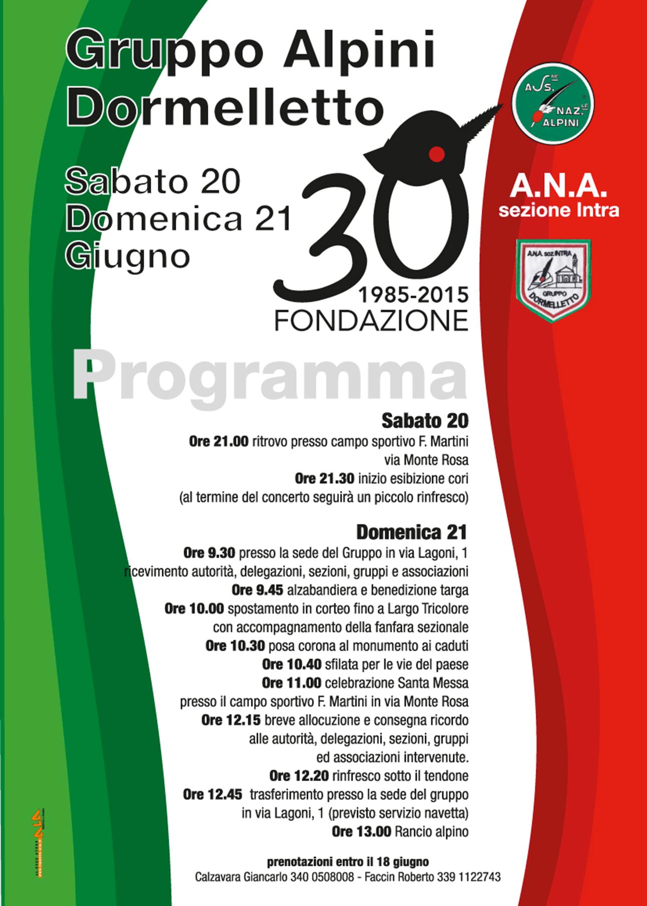Gruppo Alpini di Dormelletto: 1985-2015 - Trentesimo di fondazione