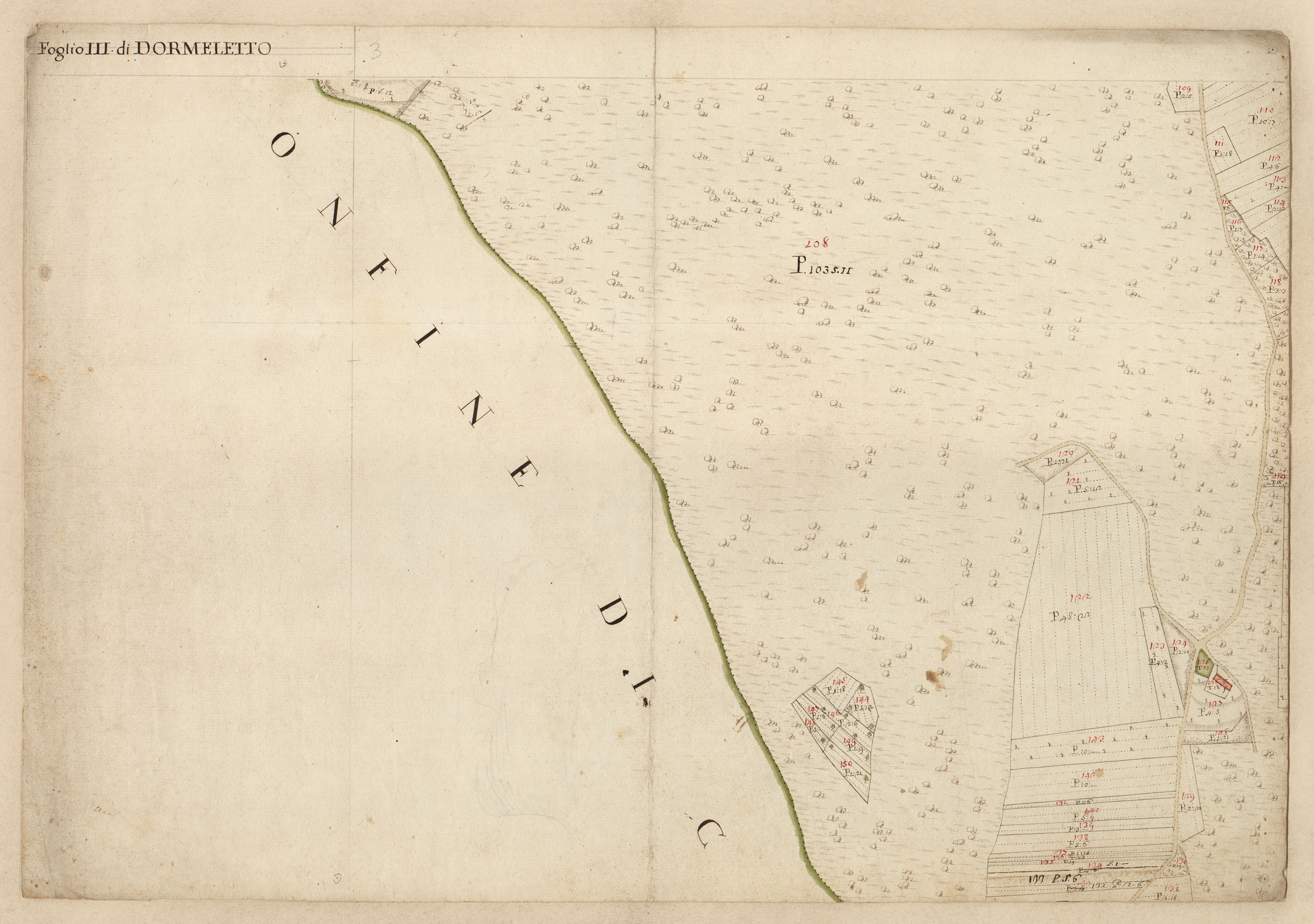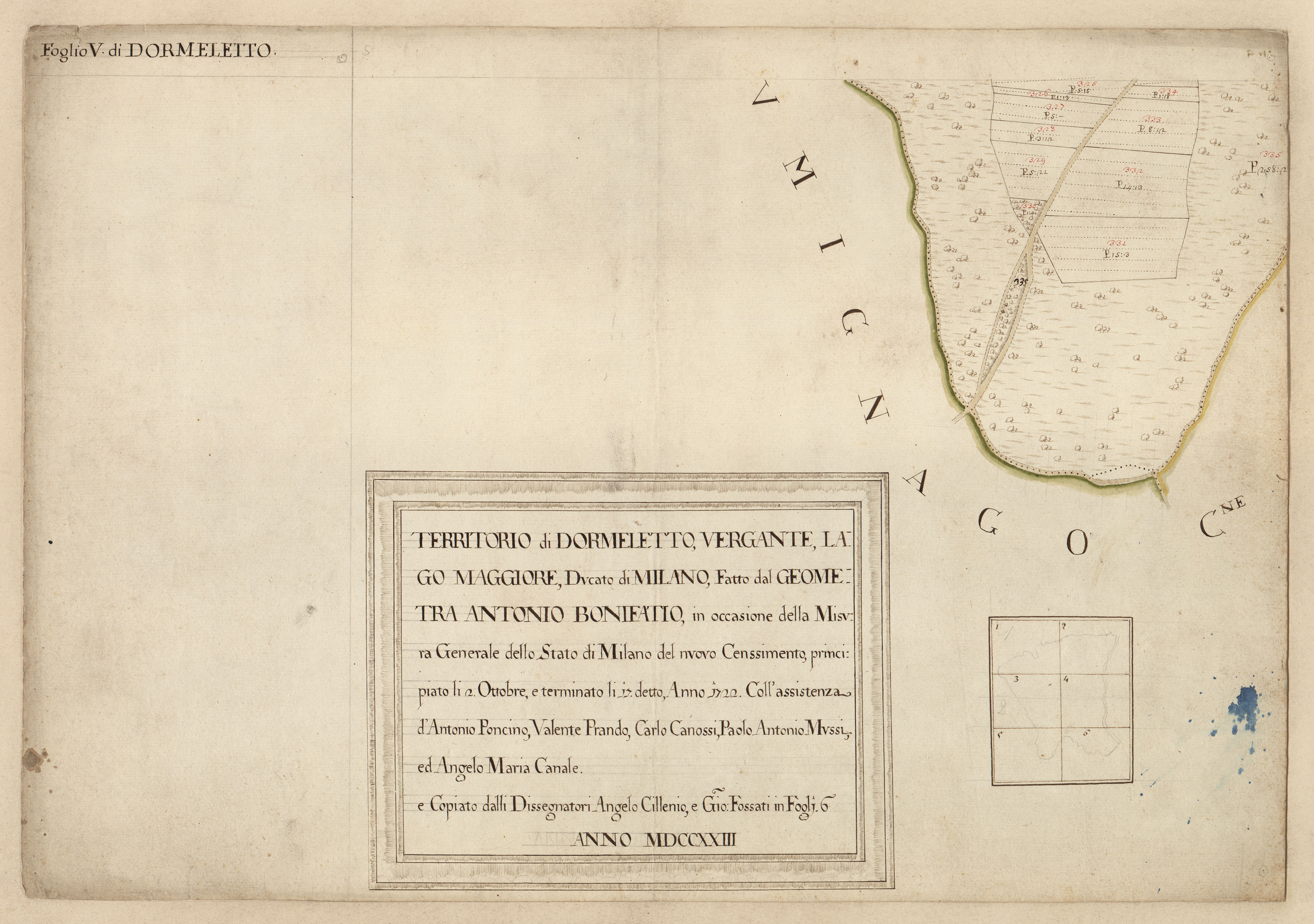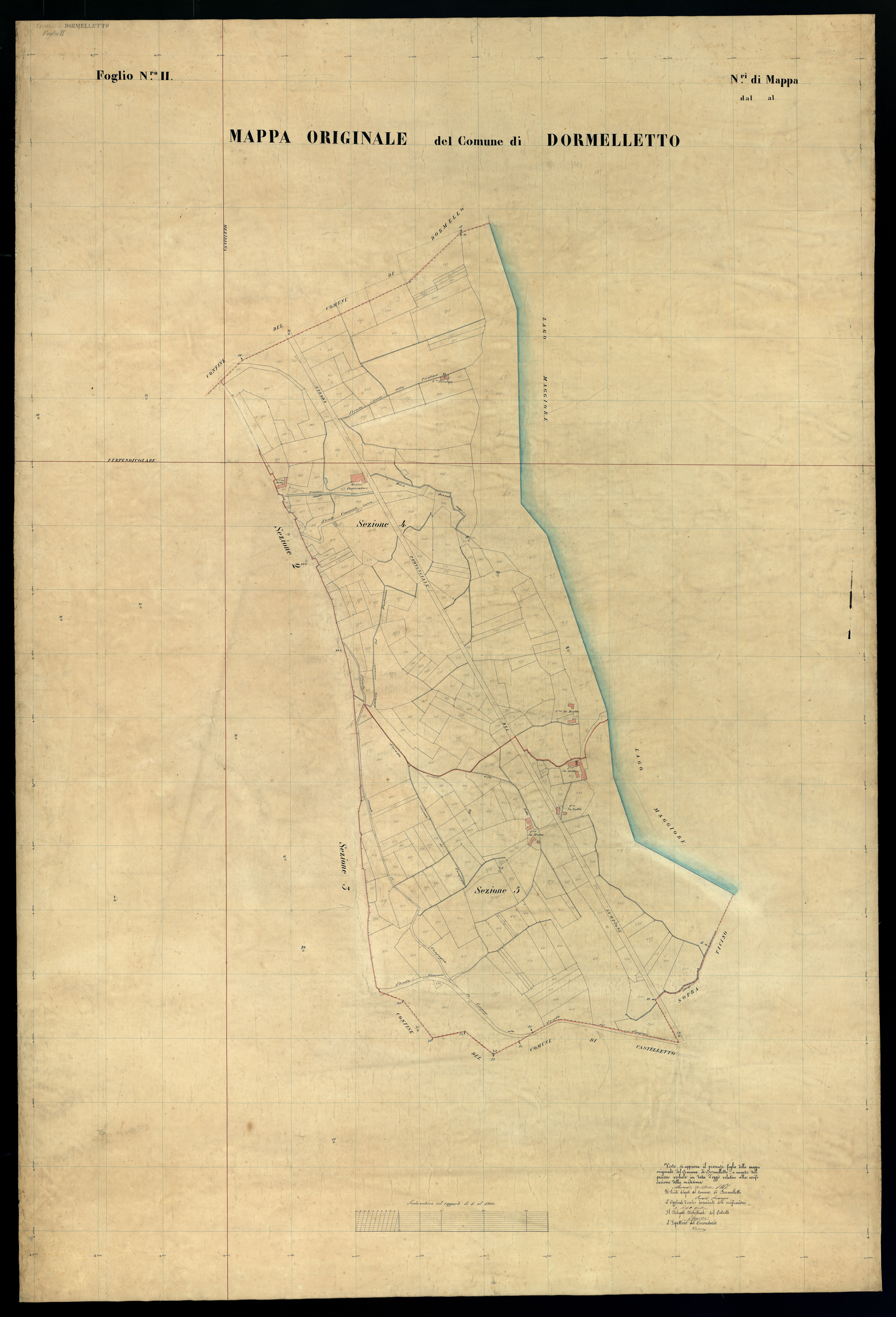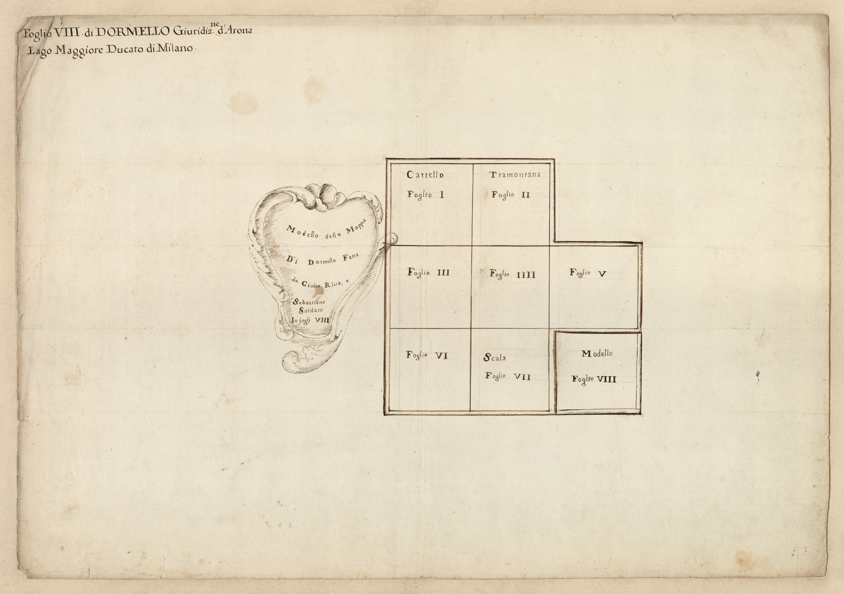 Per una più immediata lettura delle mappe, si anticipa che i catasti sono divisi in fogli che sezionano l'area complessiva; oggi questa visualizzazione può risultare un po' scomoda, ma (circa) tre secoli fa era l'unico modo per compiere opere così importanti.