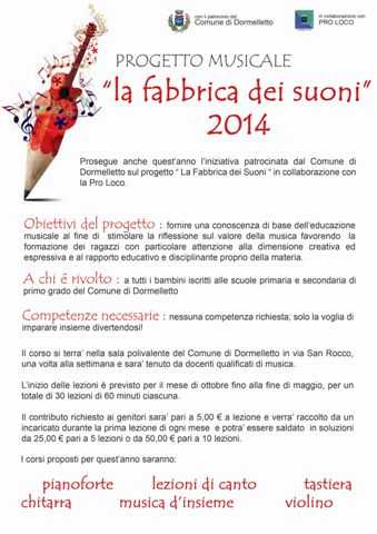 Prosegue anche quest'anno l'iniziativa "La fabbrica dei suoni" organizzata dalla Pro Loco con il patrocinio del Comune di Dormelletto.