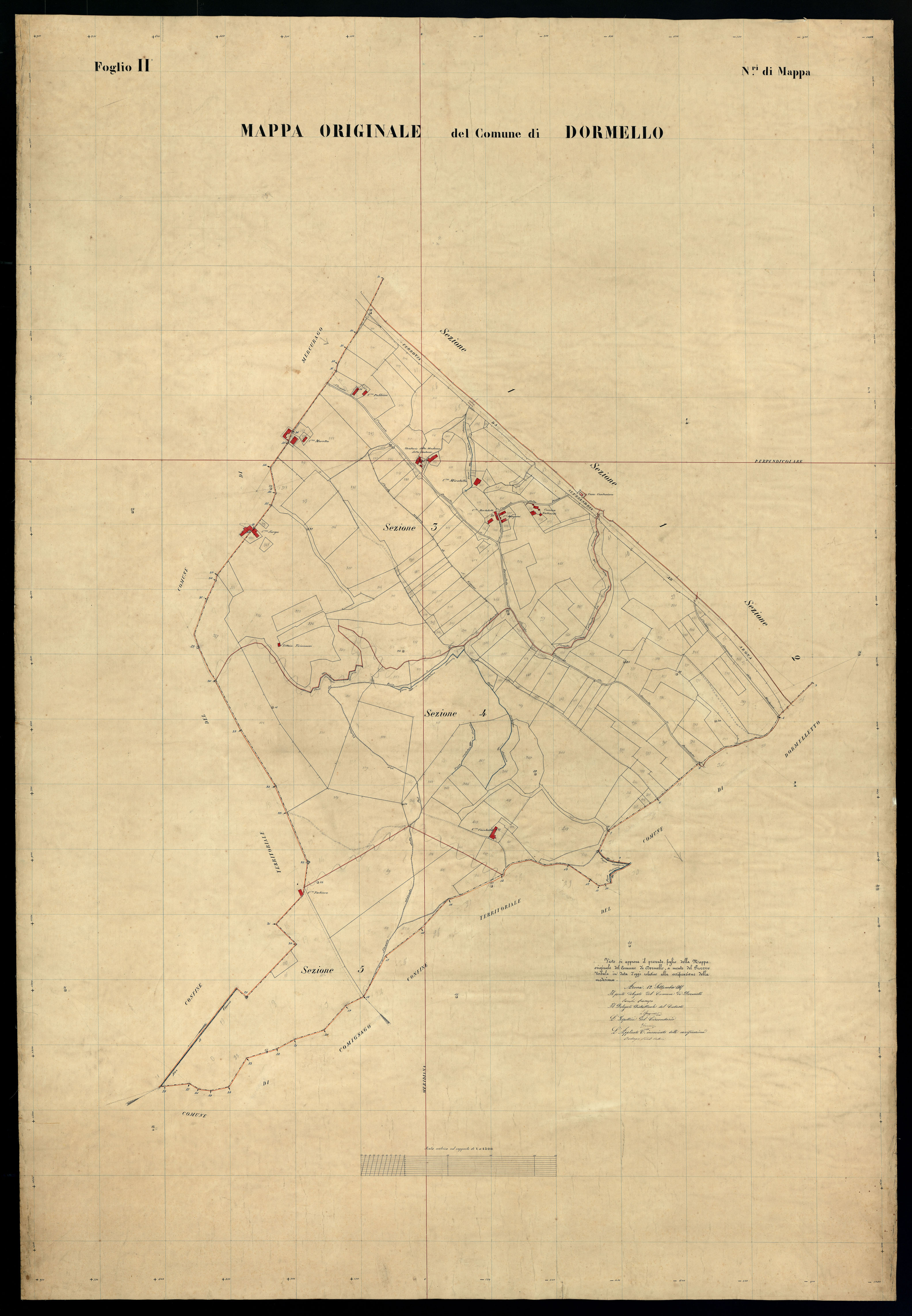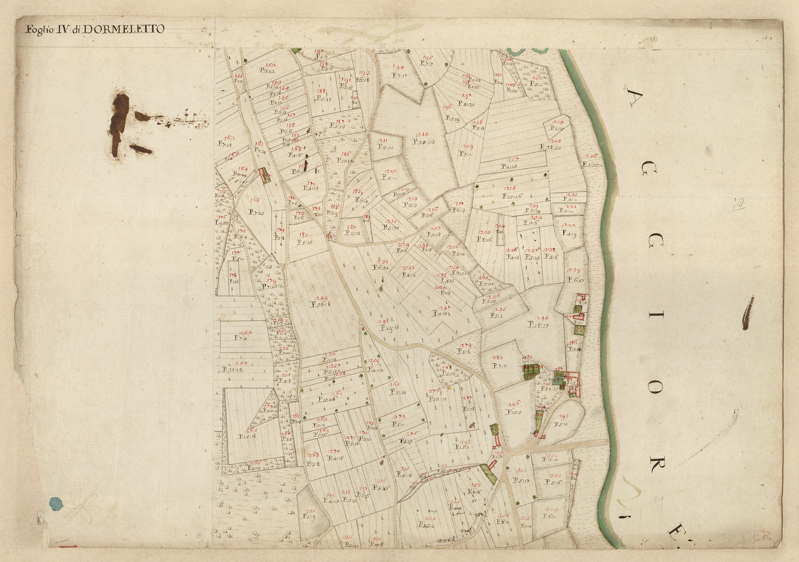 Per una più immediata lettura delle mappe, si anticipa che i catasti sono divisi in fogli che sezionano l'area complessiva; oggi questa visualizzazione può risultare un po' scomoda, ma (circa) tre secoli fa era l'unico modo per compiere opere così importanti.